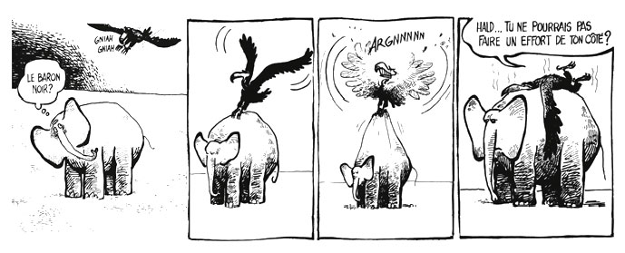À signaler dans le même esprit, la énième intégrale du « Baron noir », de Got et Pétillon, mythique série BD politico-animalière publiée par les éditions Glénat – Drugstore qui désormais visent le marché des culturistes bibliophiles avec des intégrales vendues au poids (Vuillemin, Cabu, etc.).