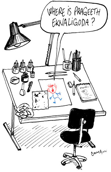 Le dessinateur sri lankais Prageeth Ekneligoda a disparu depuis le 24 janvier 2010. Caricaturiste du site d’informations LankaeNews il est connu pour ses critiques de l’actuel gouvernement.