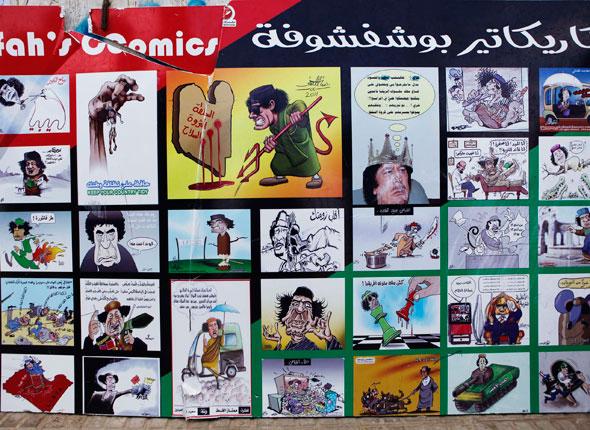Le quotidien 20 minutes publie sur son site Internet une série de dessins, tags, peintures, graffitis, représentant le colonel Mouammar Kadhafi, qui fleurissent actuellement sur les murs en Libye.