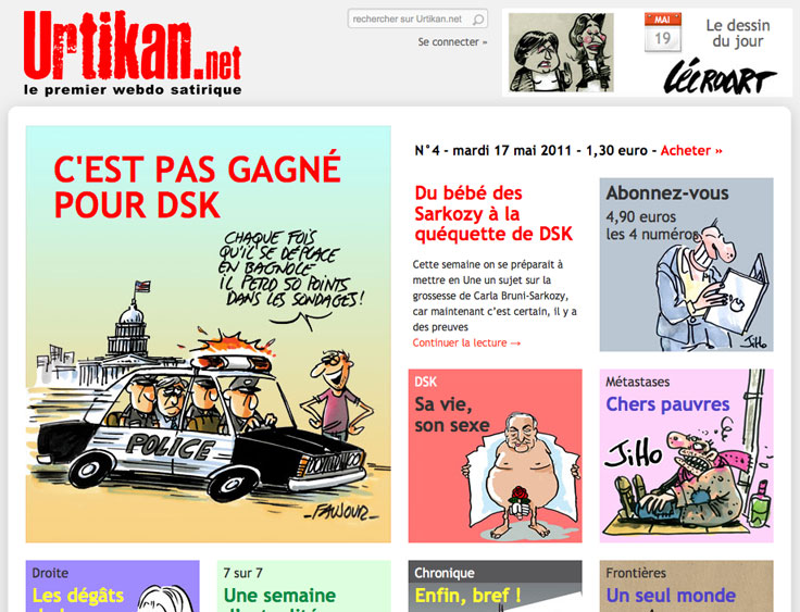À signaler aussi cette semaine la présence d’Urtikan.net sur le site helvetique Swisscom, l’équivalent d’Orange en France, avec une compilation des meilleurs dessins sur l’affaire DSK.