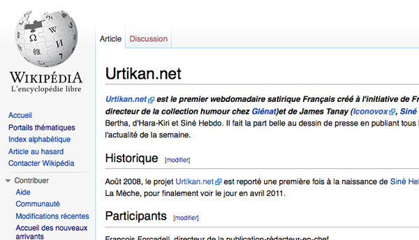 Urtikan.net le premier webdomadaire satirique à ne paraître que sur Internet n’existe pas pour Wikipedia l’encyclopédie universelle.