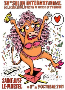 Ci-contre l’affiche – signée Coco (Corinne Rey) – de la 30ème édition du Salon International de la caricature, du dessin de presse et d’humour de St Just-le-Martel (Haute-Vienne / Limousin) qui se déroulera du 30 septembre au 9 octobre  2011.