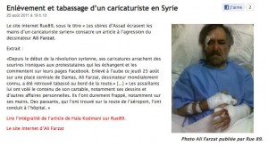 Ali Farzat avait été tabassé au mois d’août  à Damas (voir blog du 26.8.2011) et ses agresseurs s’étaient acharnés sur ses mains.