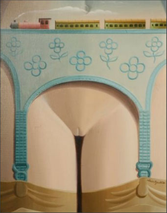 « Le Train de petite ceinture », d’Alain Gauthier ©, une des œuvres qui ont heurté Christian Manable. Les enfants portent tous des porte-jarretelles c’est bien connu.