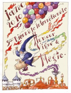 Du 26 juin au 11 juillet 2010 se déroulera à Jonzac (17), cloître des Carmes, la 9ème biennale « Humour & vigne » qui a pour thème cette année « Humour, vigne et magie ». Roland Sabatier (qui signe l’affiche) en est l’invité d’honneur, et Ralph Steadman, l’invité spécial.