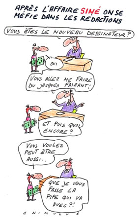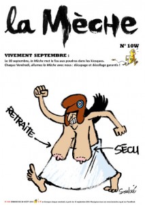 […] « Par rapport à l’histoire du dessin de presse, comment situez-vous La Mèche ? Plutôt comme un brûlot à la Siné Massacre (avec procès à la clé) ou comme un journal d’humour tendance Le Rire de la Belle Epoque ? Quelles différences principales avec feu Siné Hebdo ou votre confrère Charlie Hebdo ? L’histoire de la presse est un bouquet de chrysanthèmes : on aimerait autant ne pas s’y situer tout de suite. Notre projet n’est pas de regarder en arrière. Il ne s’agit ni de chercher à faire comme les autres ni de s’en démarquer à tout prix : on suit notre propre chemin. Il y aura des sensibilités différentes dans notre journal, et on voudrait que chacun aille au bout de son propre désir.