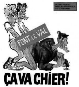 Un lecteur attentif de ce blog, Guillaume Doizy, du très intéressant site Caricatures & caricature en l’occurrence, me signale que la pochette de disque de Font & Val exhumée par Lindindre et citée dans ce blog (15.6.2010), avait aussi été publiée (en noir & blanc) par Le Canard enchaîné du 9.6.2010 (n°4676).