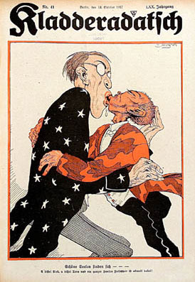 Le site Caricatures & caricature publie à propos de la couverture du n°2010 de Charlie Hebdo (voir blog du 8.10.2011) une série de caricatures datant du 19 ème et du 20ème siècle où les ennemis de toujours s’embrassent déjà goulûment (en illustration). Sur le même site, Guillaume Doizy commente aussi le dessin de Luz :