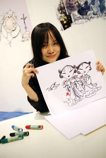 En illustration, photo de la lauréate (source CôtéCaen.fr) et le dessin primé © Lichuan Xia.