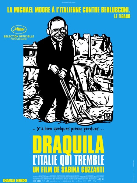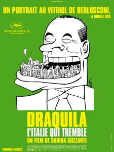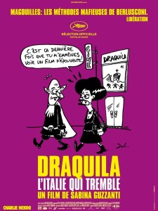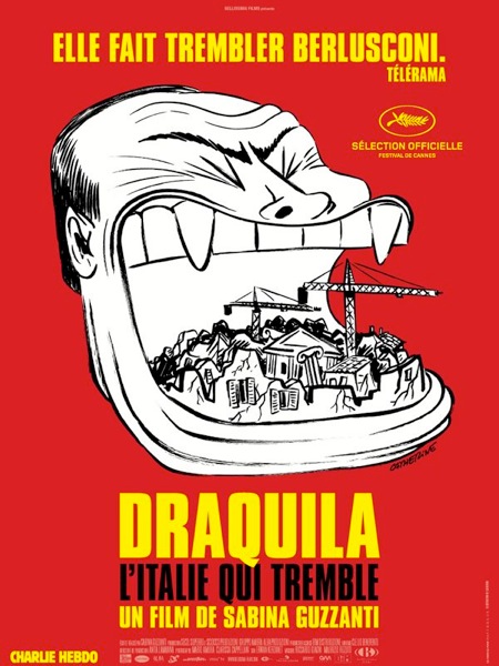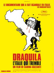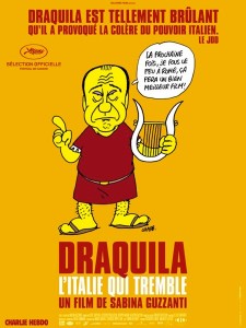 Les dessinateurs de Charlie HebdoTignous, Catherine, Honoré, Charb, Luz, Jul – ont réalisé six des sept affiches qui accompagnent la sortie en France du film « Draquila » de la réalisatrice Sabina Guzzanti, un documentaire polémique qui dénonce le comportement de Silvio Berlusconi après du tremblement de terre de l’Aquila du 6 avril 2009. Charlie Hebdo est partenaire du film. (cliquez sur les images pour les agrandir).
