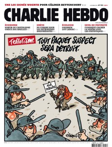 En illustration: la Une de Charlie Hebdo et un dessin signés Riss.