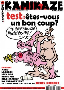KAMIKAZE n°1Après le « mensuel Hara-Kiri » de Cavanna et Choron, il y a eu le magazine « Zoo » d’Éric Martin (entre autres), et aujourd’hui « Kamikaze » de Marc Bihan et Gaël Denhard dont le n°1 vient de paraître.