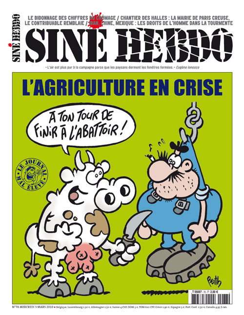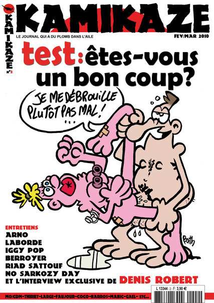 Deux couvertures signées Berth dans les kiosques en ce moment, celle de Siné Hebdo (n°78) et celle de Kamikaze qui publie son deuxième numéro (février – mars 2010).