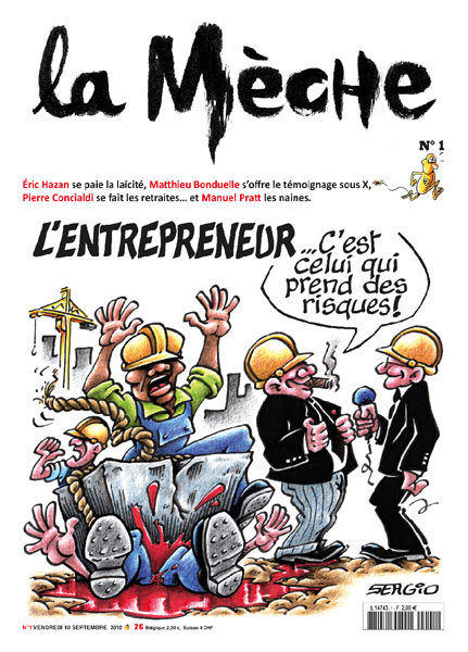 En illustration la « vrai » Une de La Mèche n°1, dessin de Sergio,