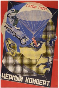 – Chromolithographie russe de 1927, « L’enveloppe noire de Harry Piel » de Borisov Grigory Il.’ich (1899-1942) et Prusakov Nikolai Petrovich (1900-1952).