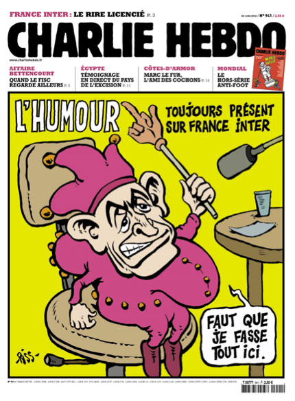 Charlie Hebdo avait déjà défendu Stéphane Guillon il y a quelques semaines contre les attaques d’Éric Besson, dans son n°941 (30.6.2010), l’hebdomadaire satirique consacre sa Une (Riss), un édito (Charb) et de nombreux dessins (Schwartz, Tignous, Luz, Jul), au licenciement arbitraire des humoristes Stéphane Guillon et Didier Porte par… Philippe Val, « l’ex-directeur de Charlie Hebdo », nommé directeur de France Inter en 2009 (À noter que «L’ouragan Philippe » tel que le surnomme Cavanna est toujours actionnaire principal du journal, avec Cabu, même si ses actions sont « gelées »).