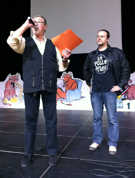 • Le Prix du Manchot attribué à Mric par Alain Grandremy, ex-du Canard Enchaîné. Mric avait déjà obtenu en 2005 à St Just le Prix du jeune talent. Photo Lacombe.