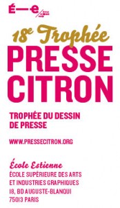 Le « Trophée Presse Citron » récompense les meilleurs dessins de presse seniors et juniors de l’année. Sont invités à y participer les dessinateurs professionnels et les étudiants des cent vingt écoles d’art de France.